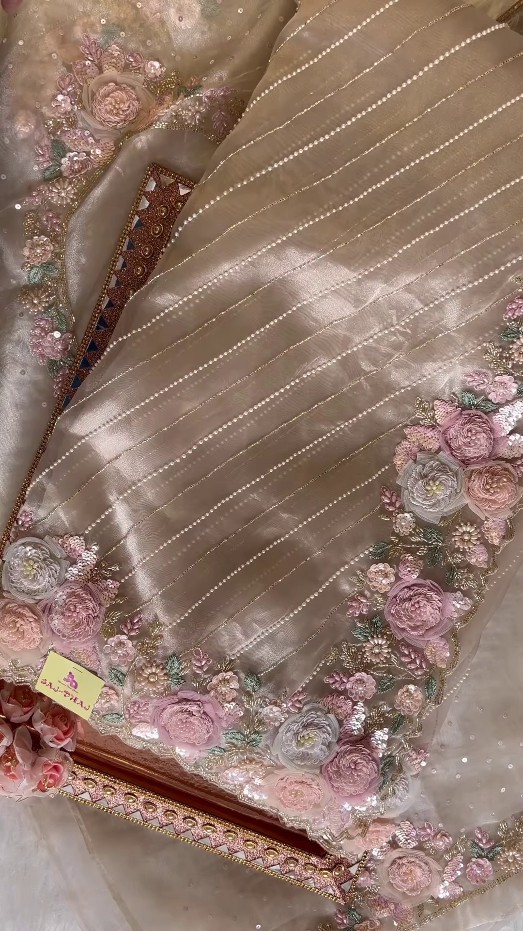 This gown is the ultimate choice for a wedding reception, a formal gala, or a milestone celebration. It represents the pinnacle of artisanal craftsmanship, where every flower and sequin is placed with precision. To style this masterpiece, keep your accessories minimal—perhaps just a pair of diamond studs—to allow the intricate 3D work to be the star of the show. This is a once-in-a-lifetime garment designed for the woman who wants to feel like she is walking through a fairytale.
