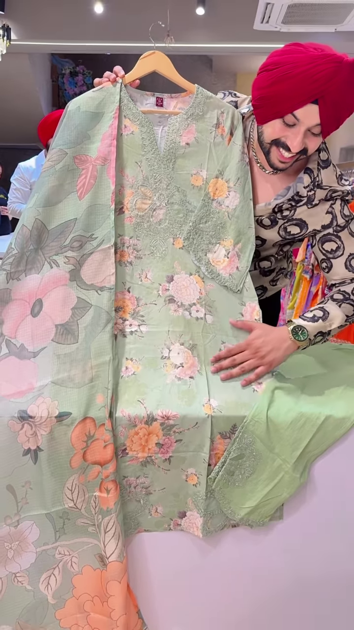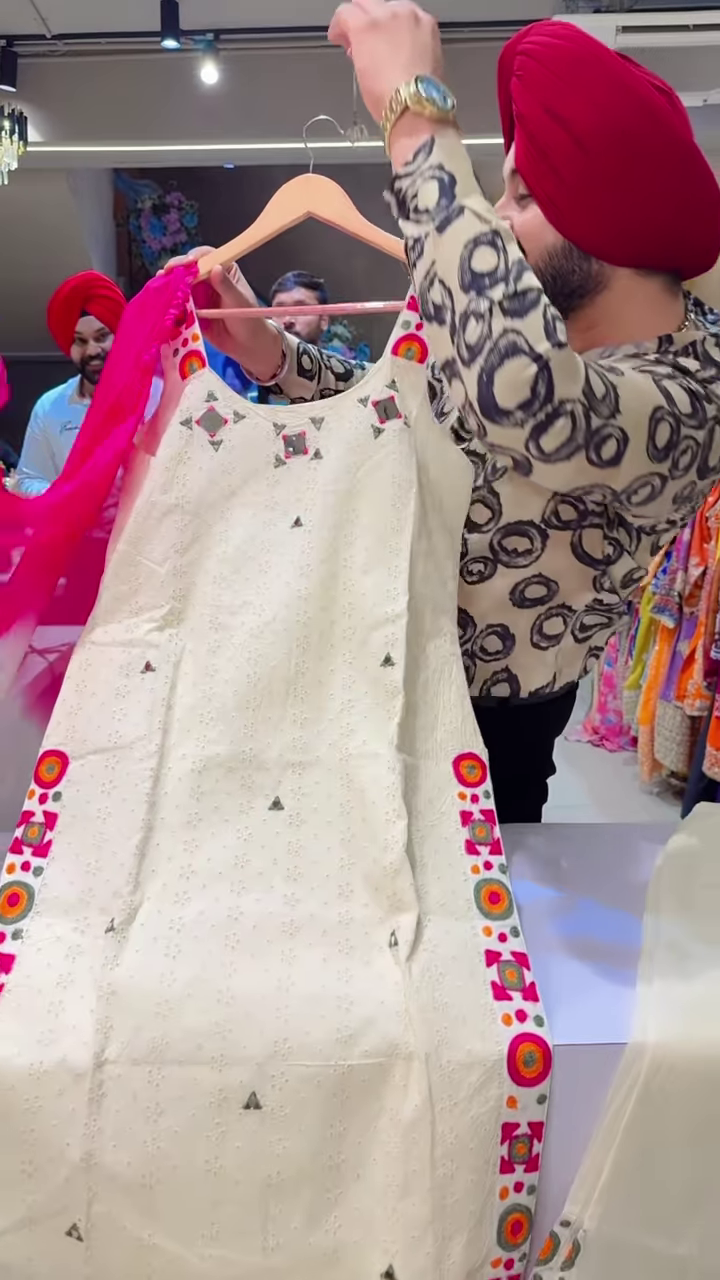 A standout feature of this outfit is the intricate embroidery around the neckline. The embroidery showcases traditional artistry, with fine threadwork that adds texture and richness to the garment. The neckline is designed to be modest yet elegant, making it suitable for both casual and festive wear.