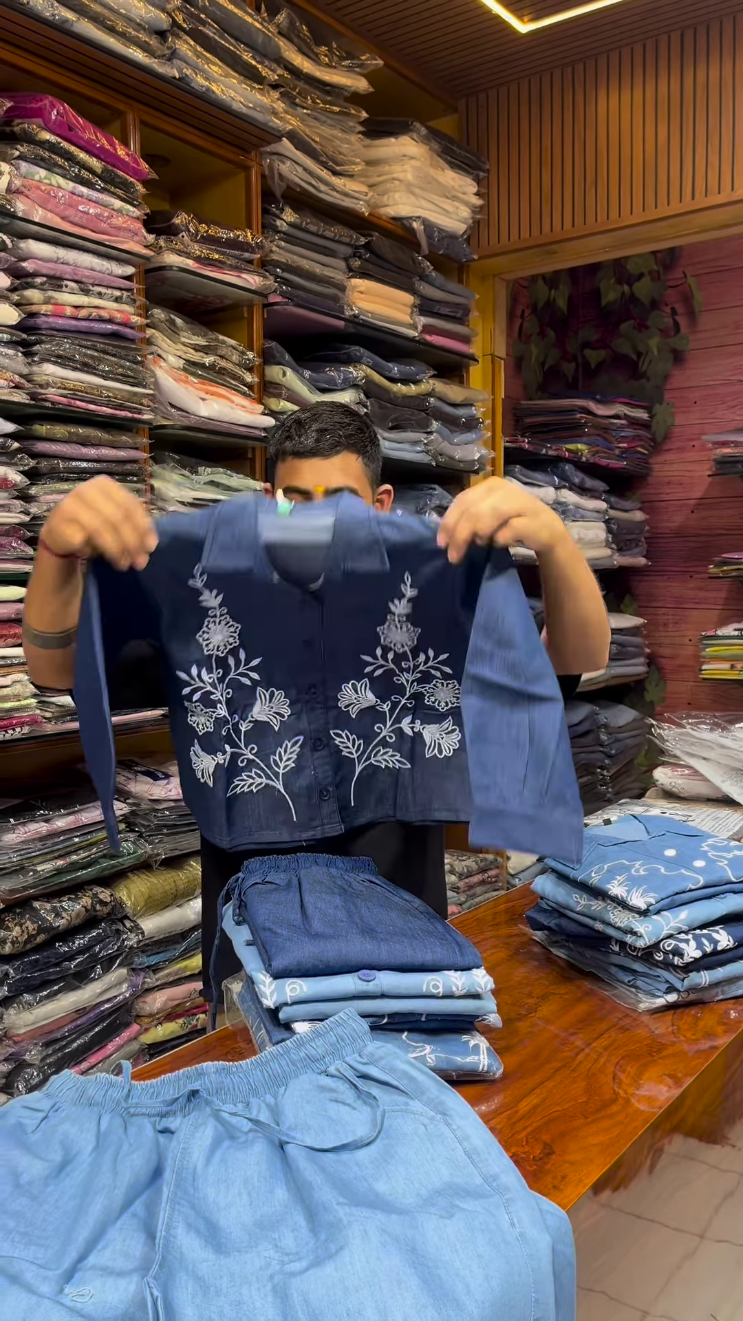 Crafted from lightweight, breathable fabric, the shirt ensures comfort throughout the day. The material appears soft to the touch, with a gentle drape that complements the embroidery and tailored fit. It’s ideal for warm climates, indoor wear, or layered styling during cooler months.
