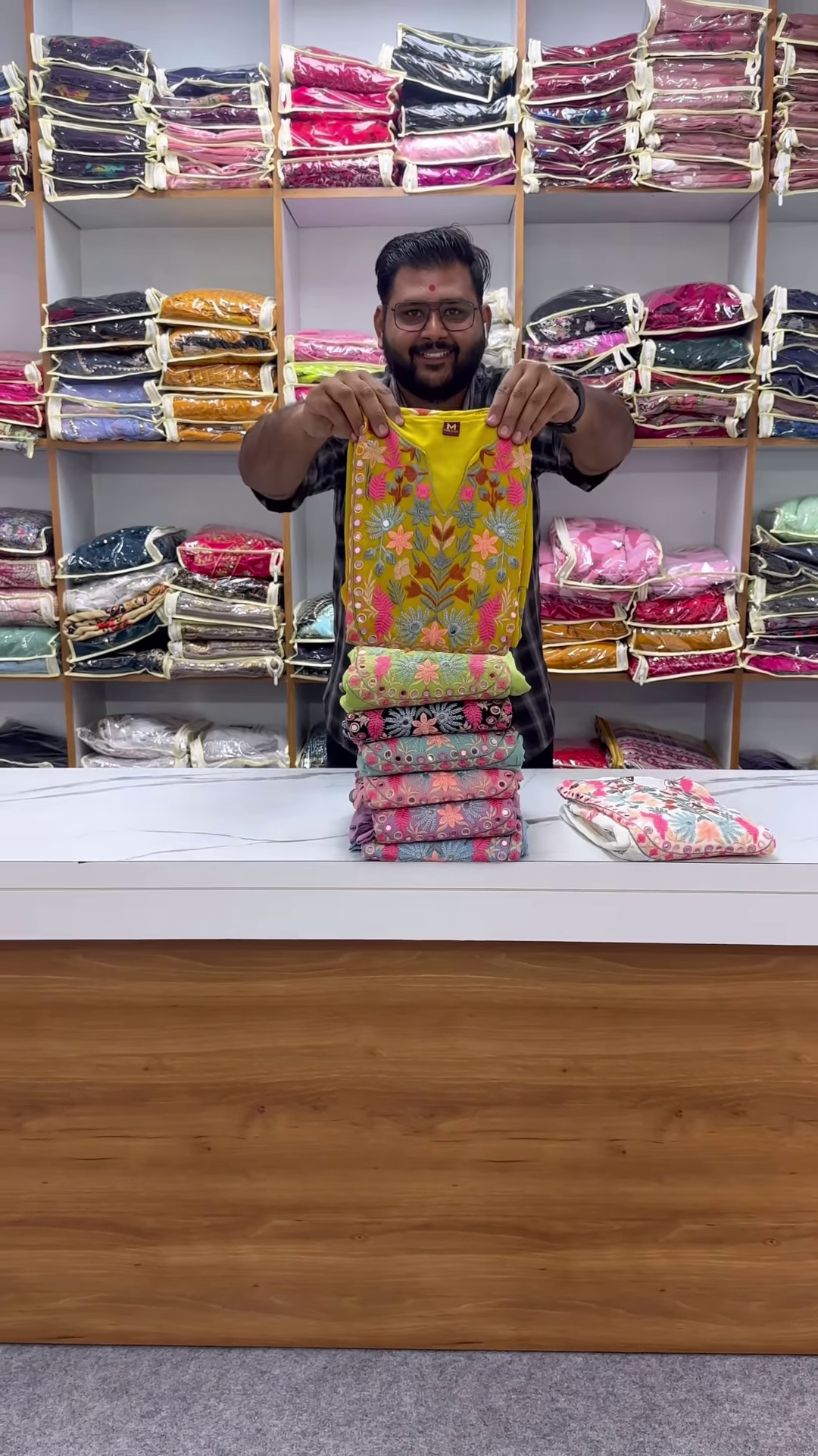 Infuse your festive wardrobe with the joyful energy of these multi-color embroidered ethnic suit sets. This collection is designed to celebrate the richness of Indian artisanal techniques, offering a vibrant palette and meticulous hand-work. The primary showcase piece is a pristine cream kurta made from high-grade cotton-silk, featuring a dense tapestry of floral and vine motifs in shades of coral, emerald, and amber. The warm, sun-kissed colors are highlighted with authentic mirror-work (sheesha embroidery) that reflects light beautifully.