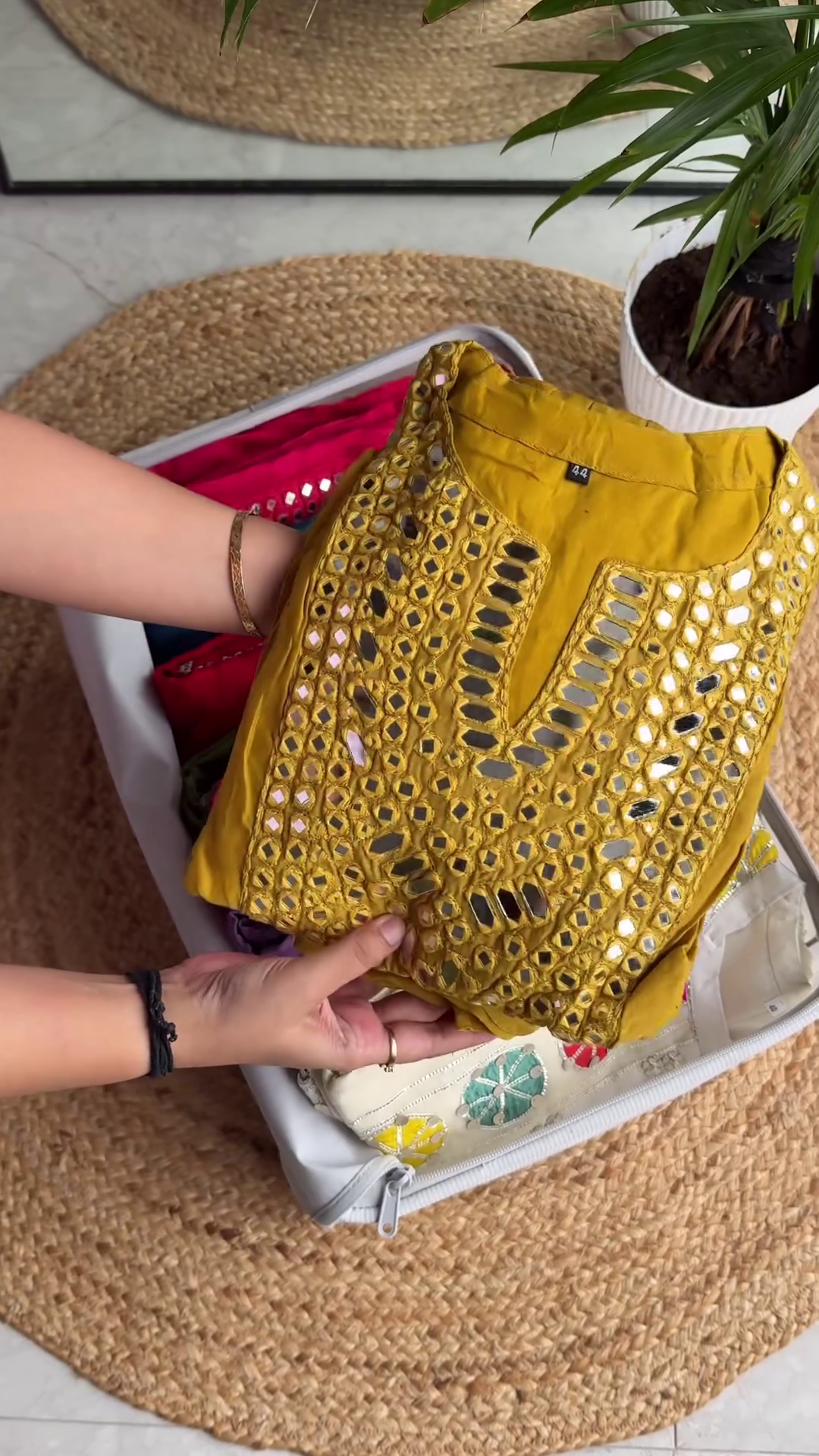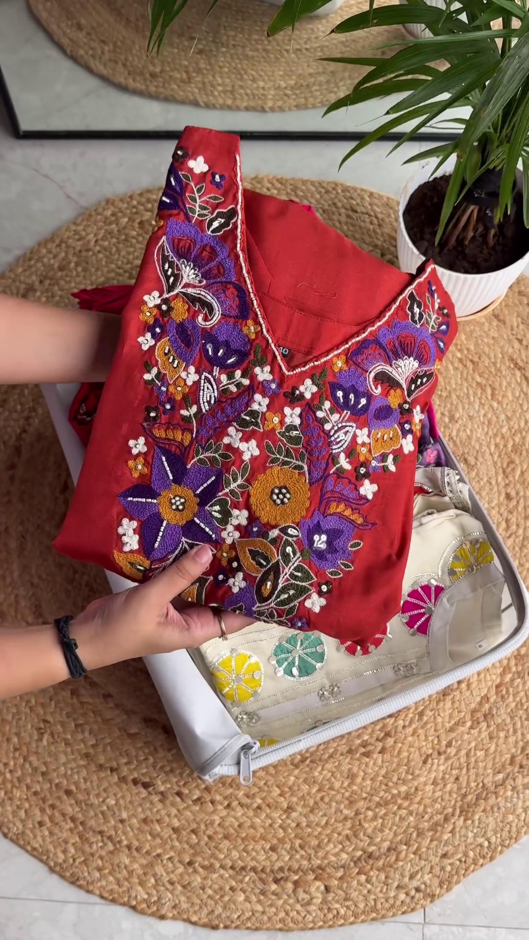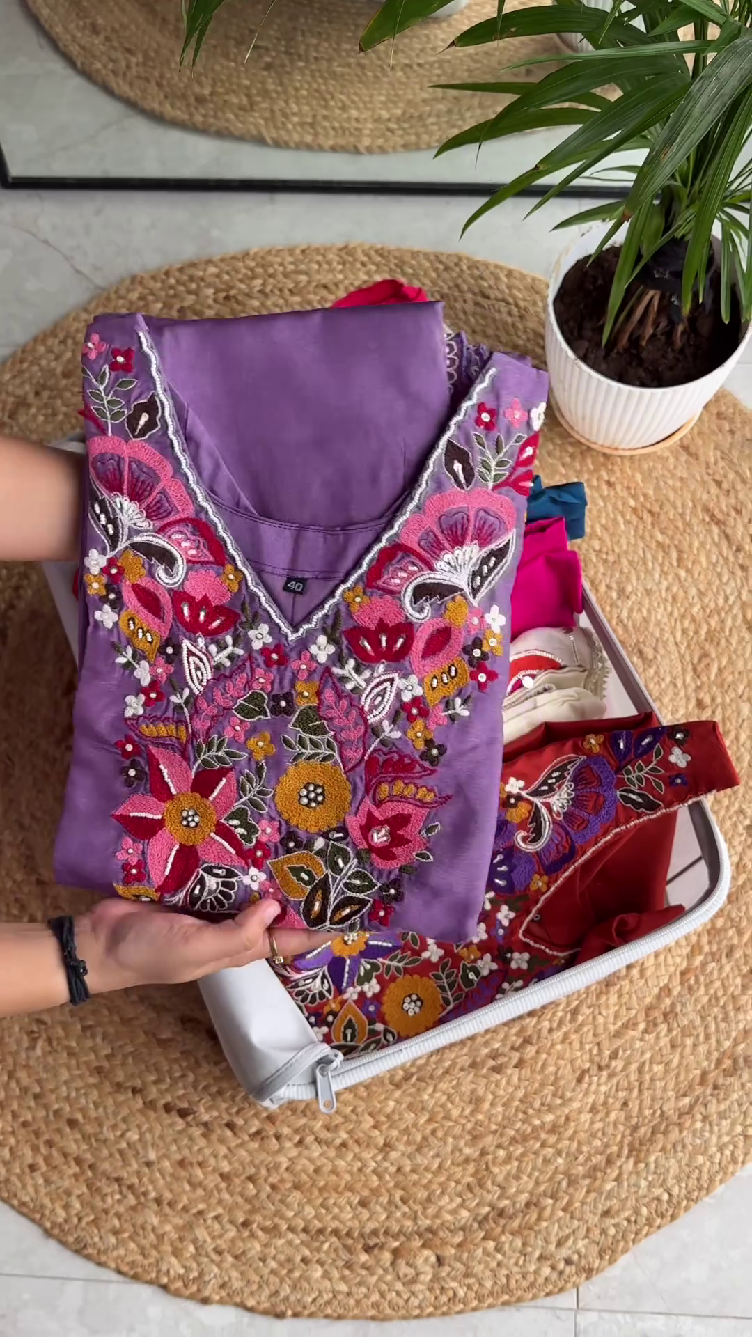 To style this vibrant off-white kurta, pair it with white cigarette pants or a colorful magenta Sharara for a more grand look. Oxidized silver jewelry and colorful bangles will perfectly complement the mirror and thread-work. For hair and makeup, a messy side braid and a bright pink lip will enhance the youthful, festive vibe of the garment. The cotton fabric is durable and easy to maintain, ensuring the colors of the patches stay vibrant over time. This kurta is not just a piece of clothing; it is a wearable celebration of heritage and modern design that will remain a cherished part of your ethnic collection.