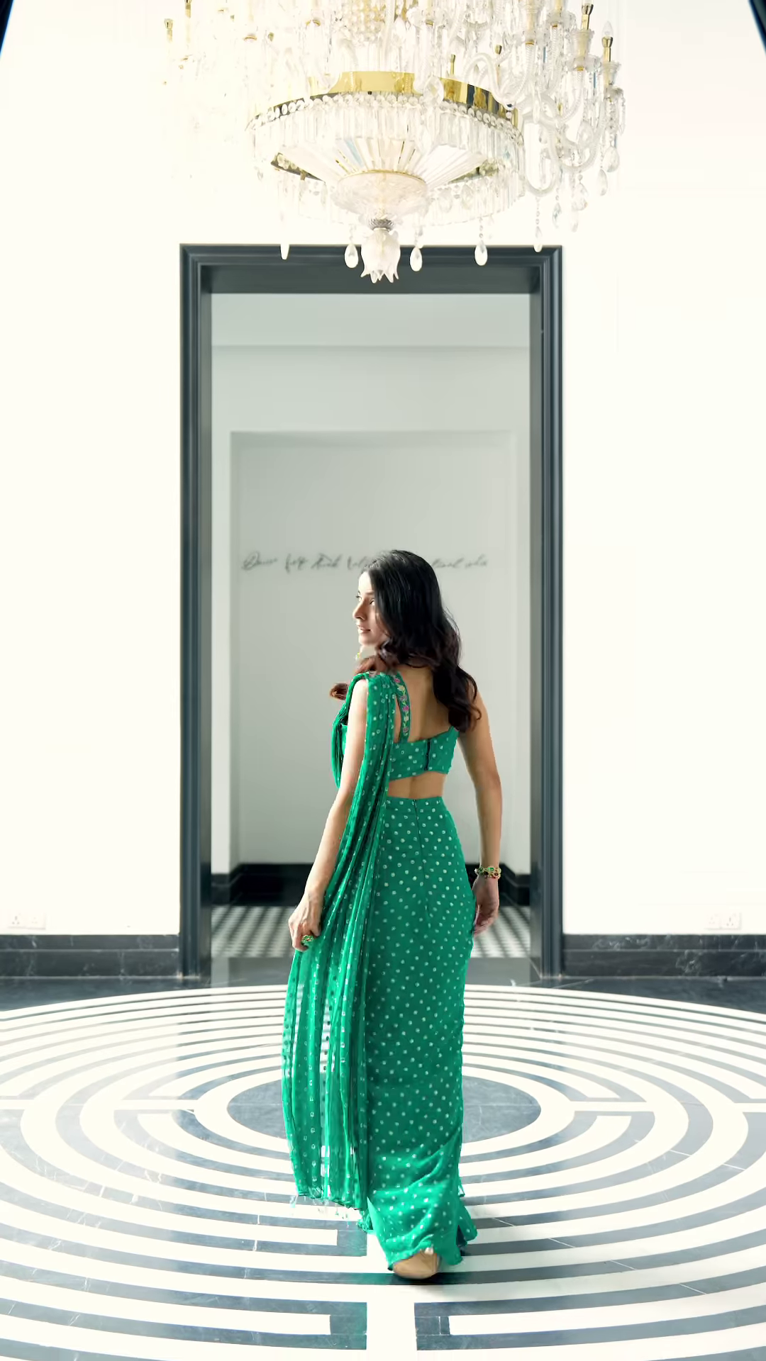 Evening Glamour: For a cocktail event, style the pallu in a loose, open-shoulder drape. Choose a bold berry lip and a sleek, high-bun to let the intricate scalloped border of the saree take center stage.