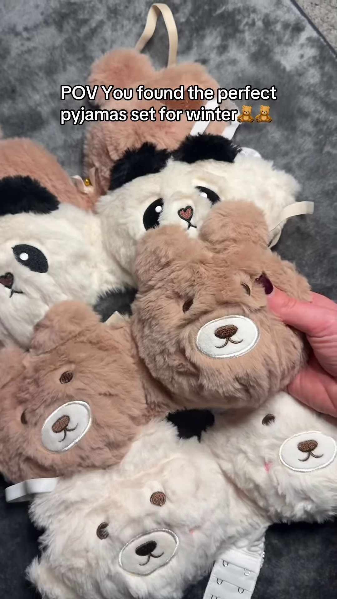 The set is a unique three-piece collection that offers versatility in how you lounge. The primary piece is a relaxed-fit, button-down pajama shirt. It features a classic notched collar and large, functional buttons in a matching cocoa brown shade. The tailoring is loose and breezy, ensuring you never feel restricted while sleeping. The second piece is the showstopper of the collection: a plush, 3D teddy bear bralette. The cups of this bralette are designed to look like fluffy teddy bear faces, complete with hand-embroidered eyes, tiny ears, and pink blushing cheeks. This adds a playful, artisanal touch that makes the set look like a designer boutique find. It is perfect for wearing under the shirt or on its own for a coordinated, aesthetic look.